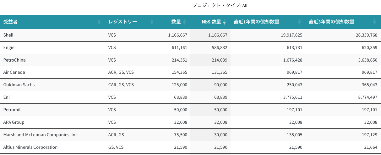 対象期間中に自然由来プロジェクトのクレジットを償却した上位10社は以下の通りです。Goldman Sachsを除き、最初の8社は主にエネルギー、石油・ガス会社、航空会社で構成されています。EngieとGoldman Sachsは以下に個別ユースケースとして紹介します。なお、PetroChinaは8月のニュースレター、Eniは3月のニュースレターで既に取り上げられています。