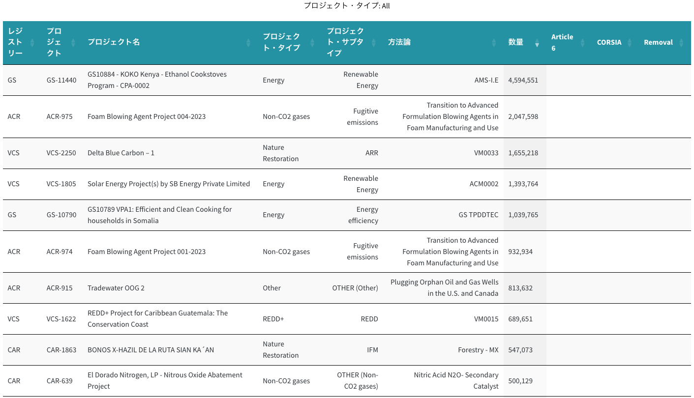 - 分析対象レジストリー: Verra、GS(Gold Standard)、CAR(Climate Action Reserve)、ACR(American Carbon Registry)