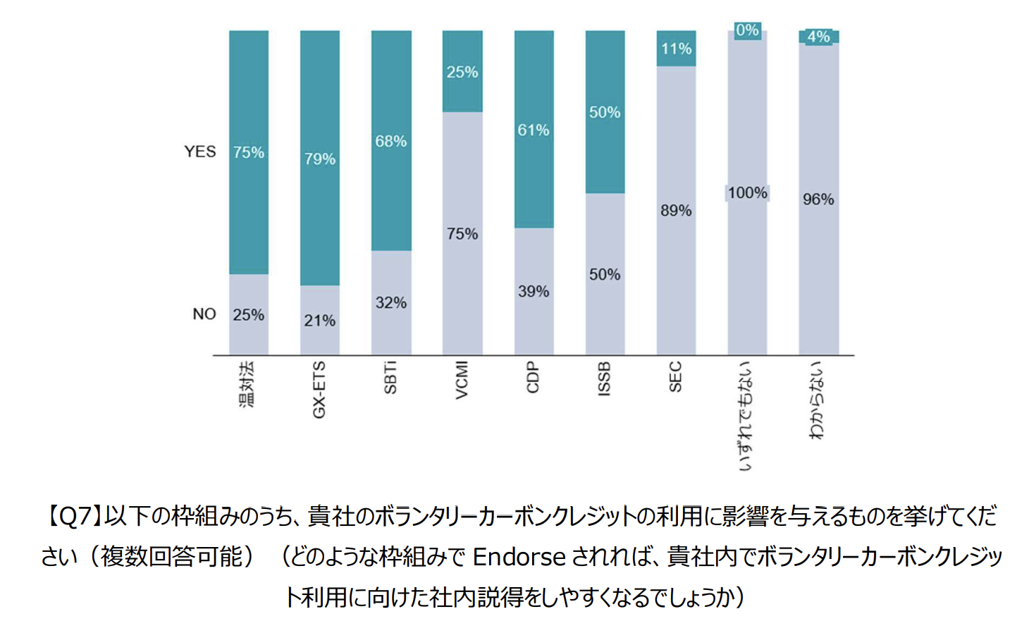 (*) 例えば、以下の調査結果(出所; 経済産業省のGXリーグのもとで行われた、民間主導の「ボランタリークレジット情報開示検討WG」報告書より)をご参照ください。