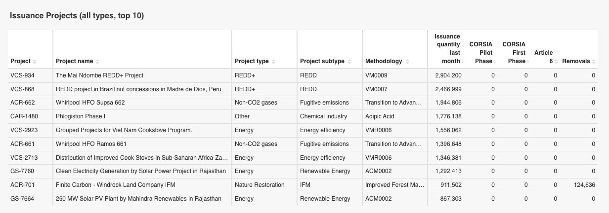 以下は、本対象期間にクレジットが発行されたプロジェクトの上位10件です。