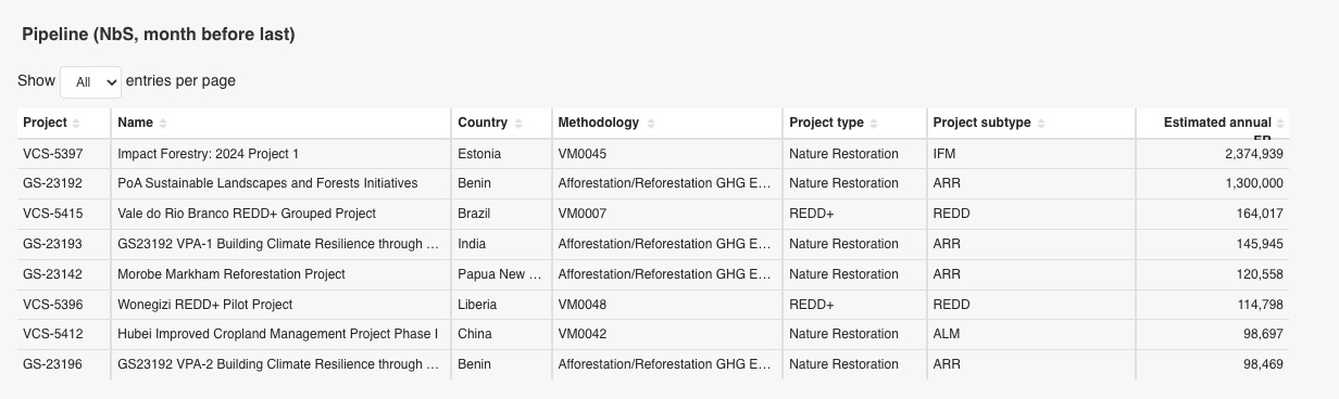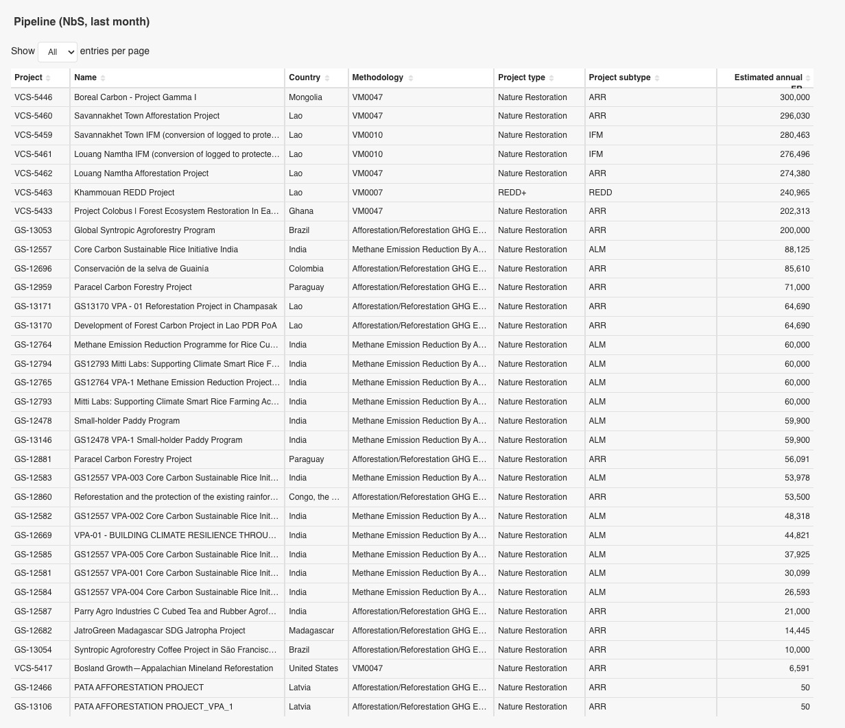 用語: 年間ERとは、年間の排出削減・吸収量(tCO₂e)のことを指します。このセクションでは、まず新しいパイプラインプロジェクトを紹介し、その後、前回のニュースレターに反映されていなかった先月のパイプラインでの重要な変更点をレビューします。