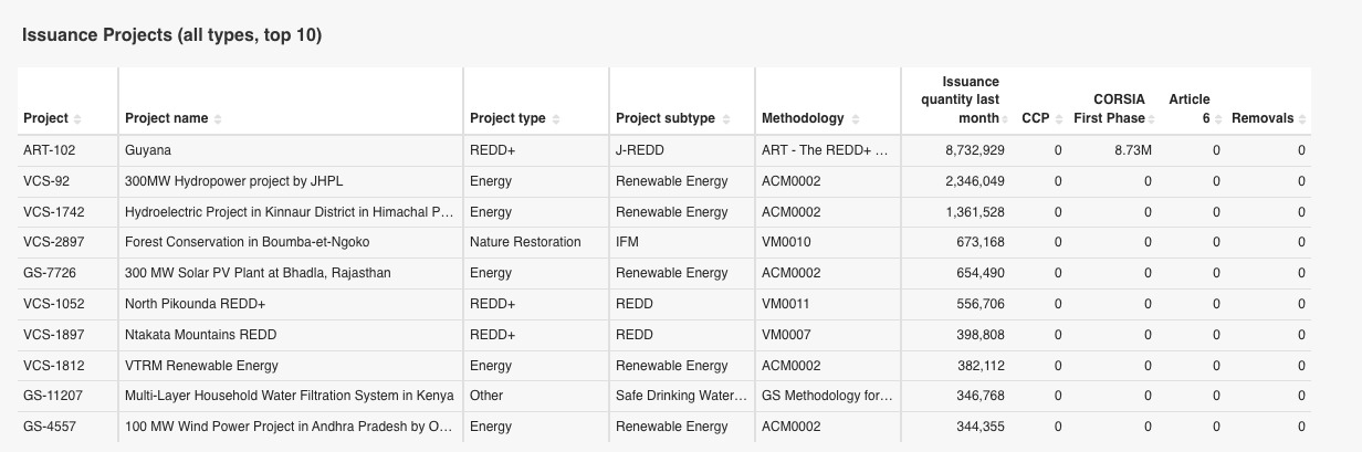 以下は、本対象期間にクレジットが発行されたプロジェクトの上位10件です。