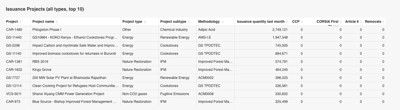 以下は、本対象期間にクレジットが発行されたプロジェクトの上位10件です。