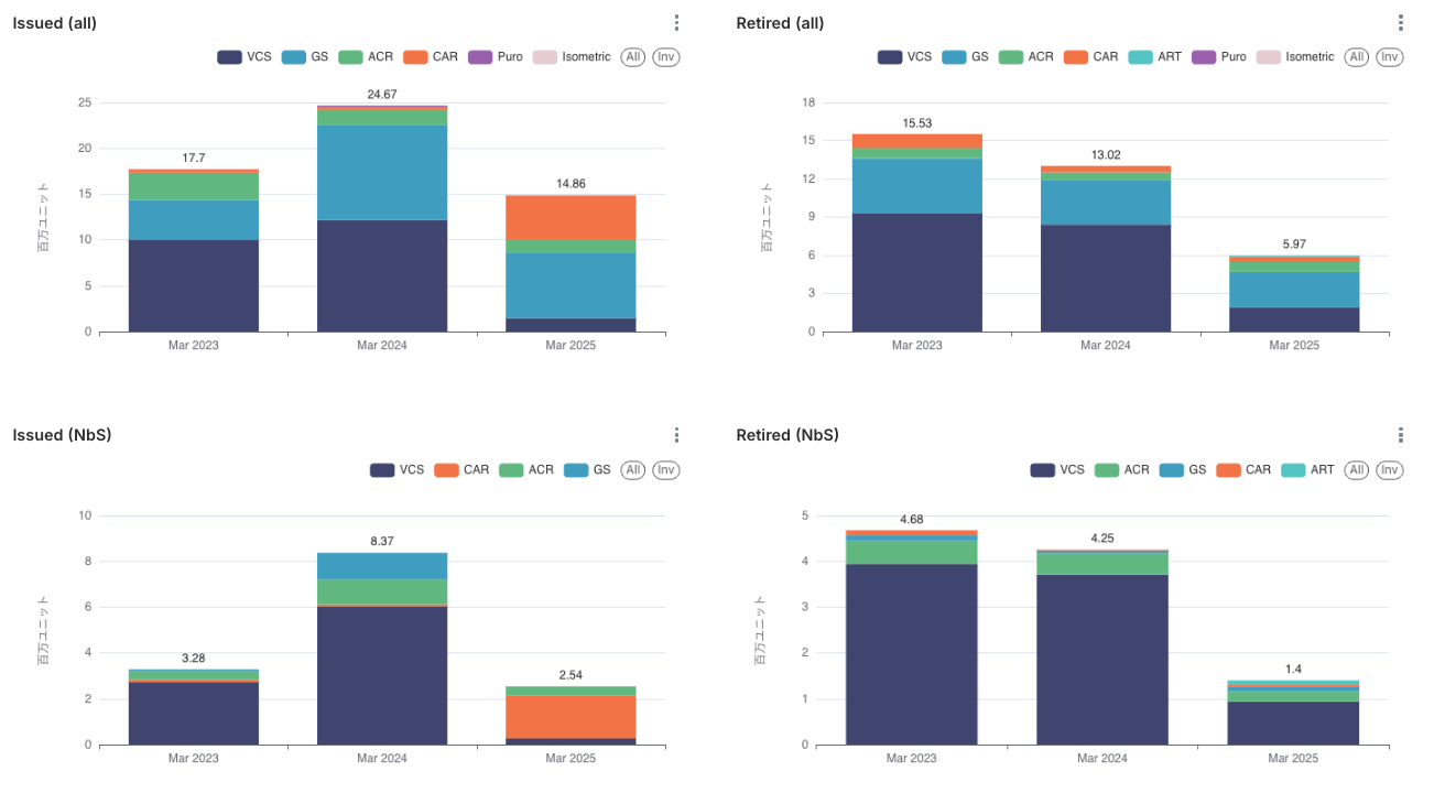 償却に関しては、3月のクレジット償却量は597万ユニットとなり、こちらも前年から減少しました。この償却での主要なレジストリはVCSではなく、GSでした。