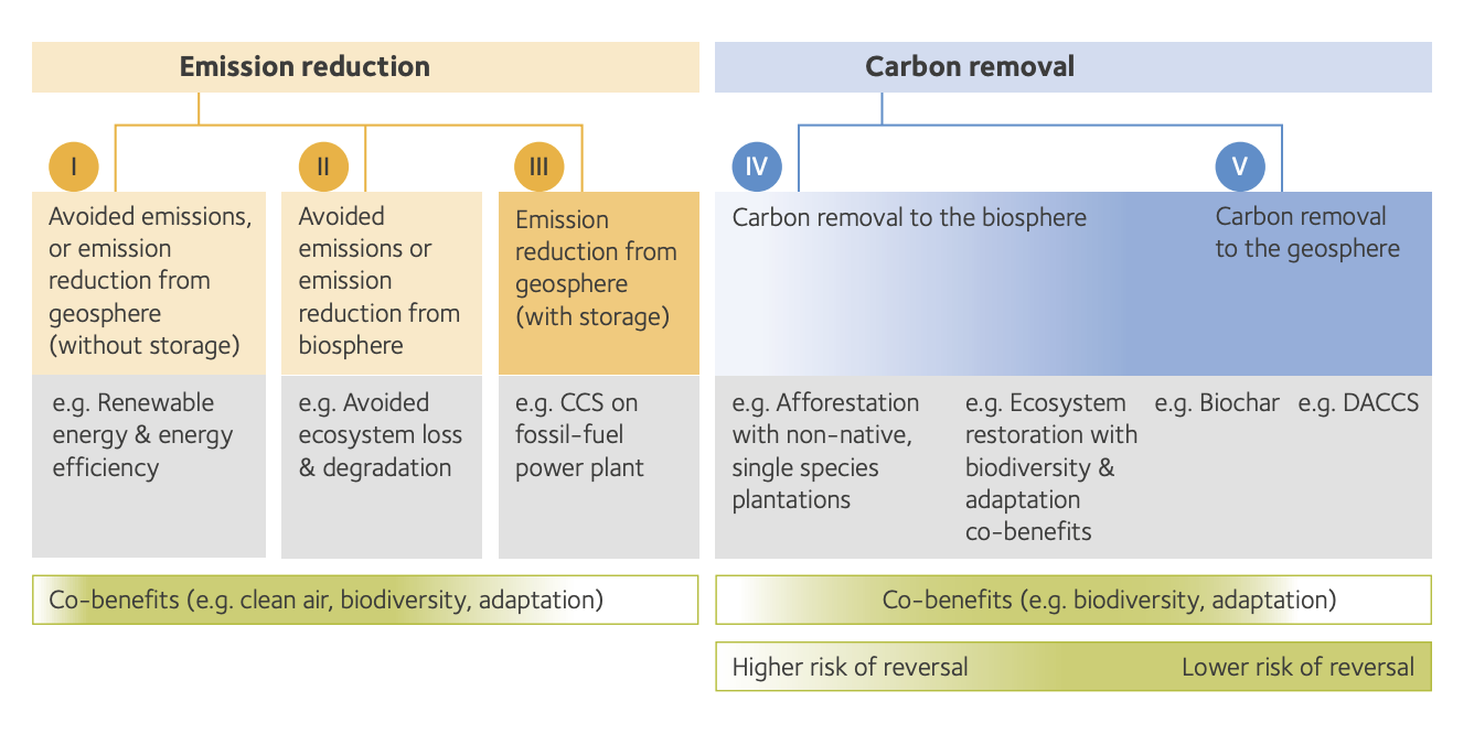 2022年に出されたものからの一番重要であり大きな変更点は、永続的な除去(数百年レベル)、炭素製品(木質建材など。最低35年以上)、炭素農業(Carbon Farming; 森林再生や湿地管理など)、から発生する単位を明確に区別したことです。具体的には、以下3(+1)のカテゴリーに炭素除去が分かれています。