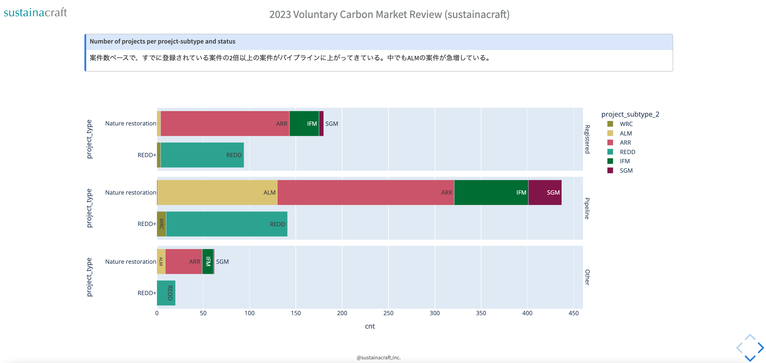 この前の記事で記載した通り、昨年末でのセミナーで用いたボランタリークレジットの2023年末までの市場動向レポートを公開しました(英語版、日本語版)。