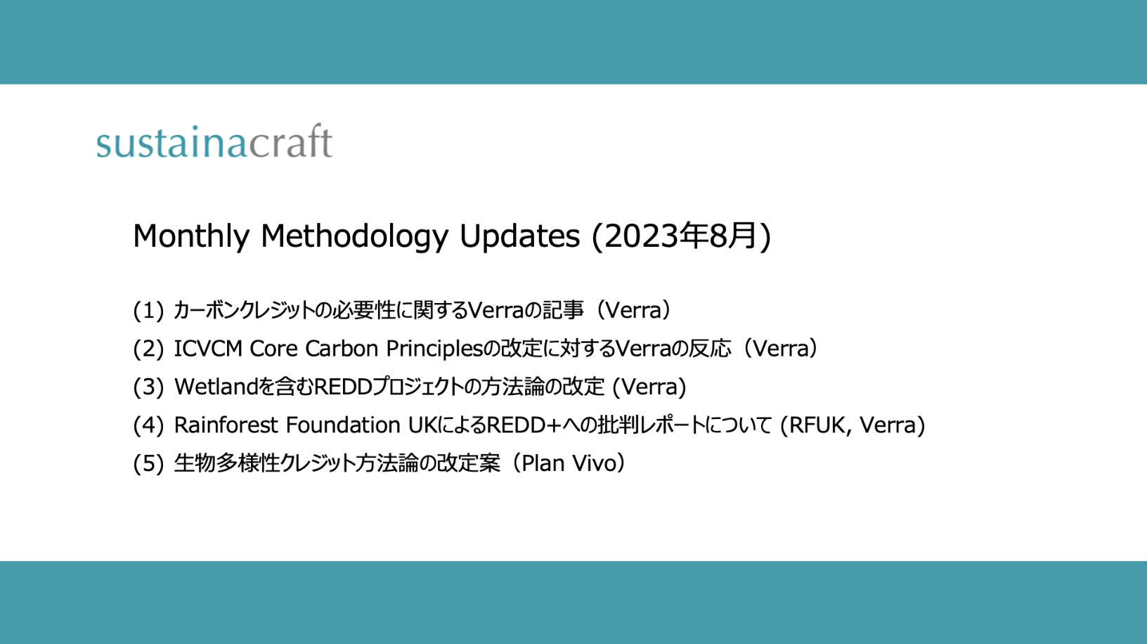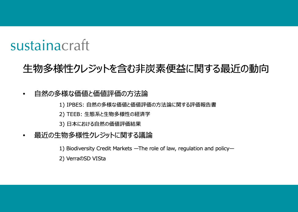 株式会社sustainacraftのニュースレターです。今回は、今回はMonthly VCM Updateとして、2023年12月に出された生物多様性クレジットの買い手向けのガイドという位置付けのレポートを2つ紹介します。生物多様性クレジットについては、このニュースレターでも以下のように複数回扱ってきましたが、いずれも方法論を紹介するテクニカルなものでした。