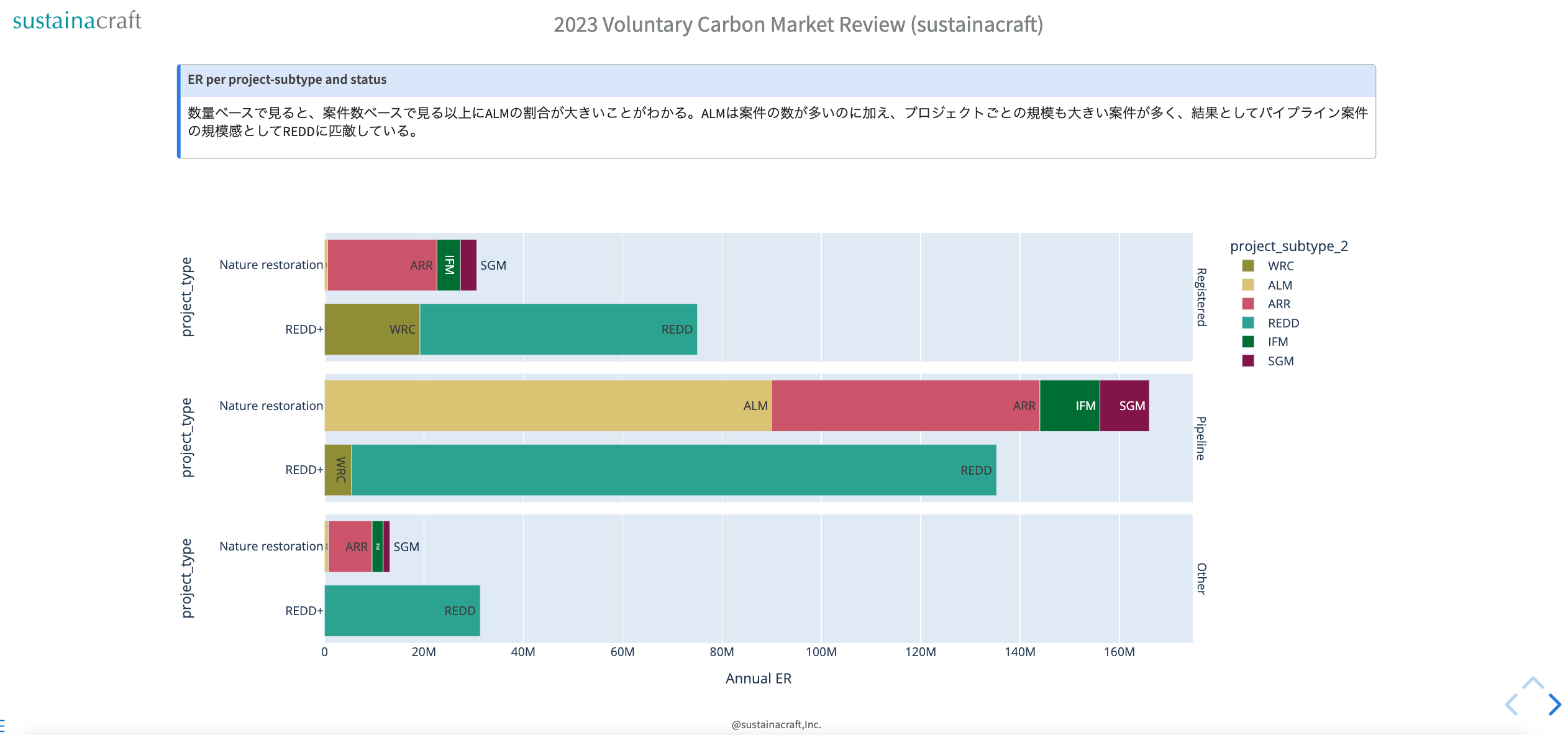 この前の記事で記載した通り、昨年末でのセミナーで用いたボランタリークレジットの2023年末までの市場動向レポートを公開しました(英語版、日本語版)。