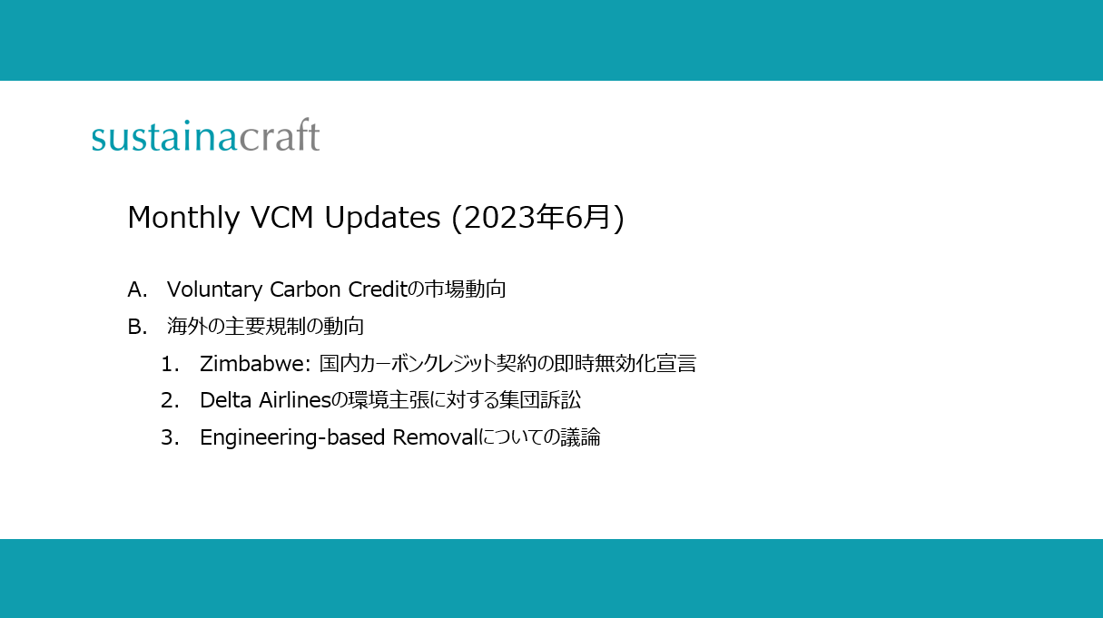 株式会社sustainacraftのニュースレターです。今回はMonthly VCM Updateとして、主に2023年5月に発表されたボランタリーカーボンクレジット市場・海外規制に関するトピックを中心にお届けします。